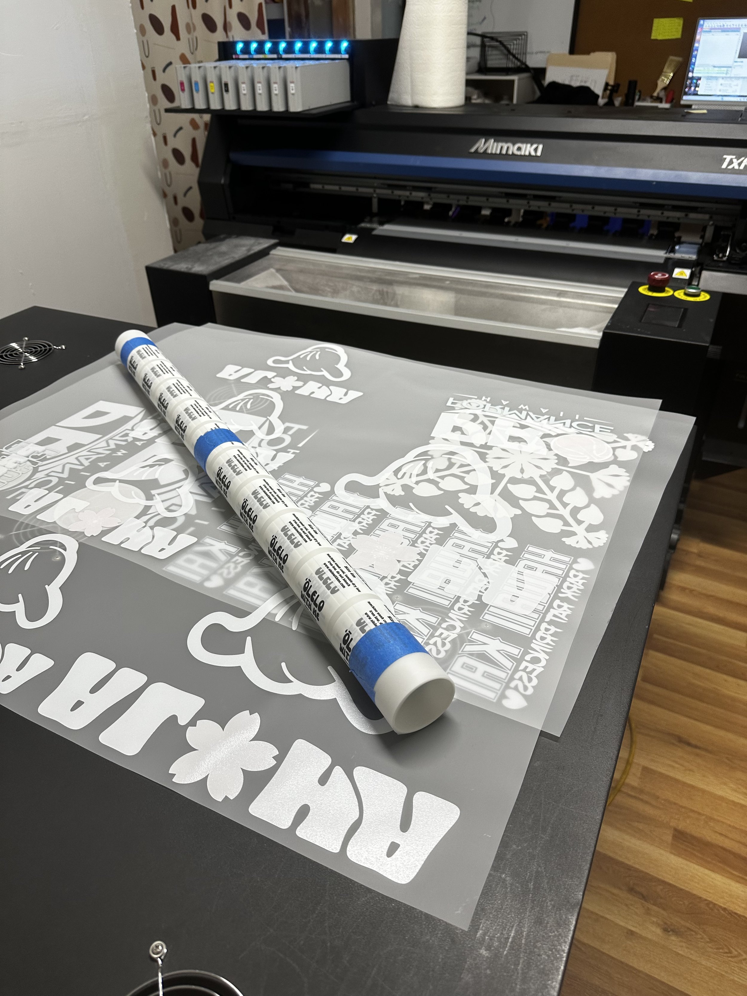Our DTF sheets are 30” wide and 70 cents per linear inch. Please email us if you’re interested in purchasing transfers.